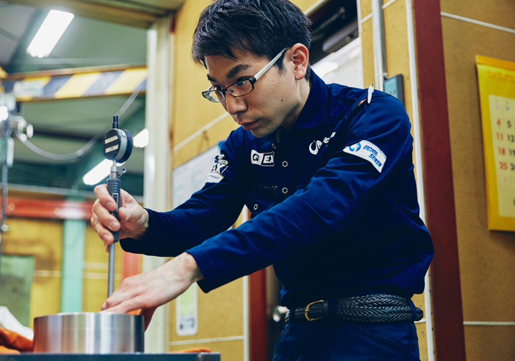 その他にも仕事の面白さ、喜びを感じる瞬間はいくつもあります。たとえば、これまでのやり方を見直し、改善した結果、仕事の効率が上がったときはうれしいですね。製品だけでなく、仕事の無駄を削ることで、自分の仕事が楽になり、他のことに費やすことができる時間も増えますからね。また、入社4年目からは内面研削チーム全体の工程管理も任されるようになり、自分以外の3名のメンバーの仕事を段取る面白さも加わりました。週1回、自分たちでミーティングを開き、仕事の進捗を共有。多いときは10種類以上の製品が運ばれてくるなかで、抜けや漏れがないように仕事を進め、ときには人員の再配置やスケジュールの変更も指示します。さらに、現在は会社の経営に携わるアメーバ経営の委員にも選ばれ、現場の仕事を会社の経営と連動させて考えるようにトレーニングしている最中です。数字を意識するようになって、会社への貢献の度合いも目に見えて分かるようになり、またひとつ、仕事に新しい面白さが加わりましたね。